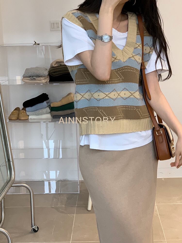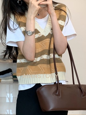 ノースリーブニットオータムVネックプルオーバー ウール レッド 刺繍 秋物 ビッグFスモールZ韓国42381647339