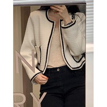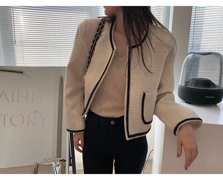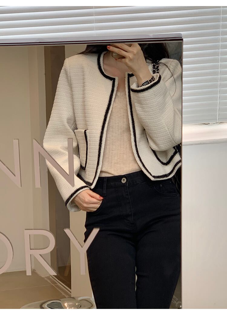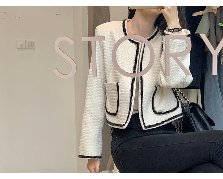 ショートジャケット スプリングオータム薄手ラウンドネックカラー ロング 春物 秋物 Oネック ビッグFスモールZ韓国50444446016