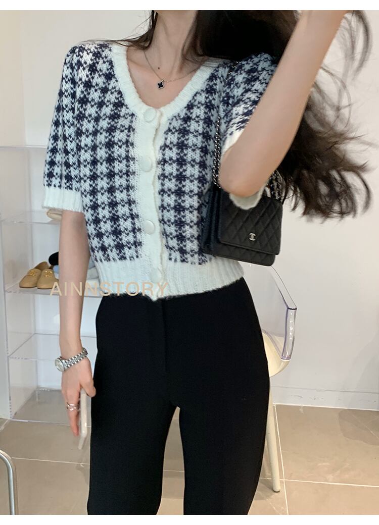ショートセーター ジャケット オータム薄手ルーズカラーラウンドネック半袖スリーブカーディガン ハーフスリーブ 秋物 Oネック ビッグFスモールZ韓国81871227089