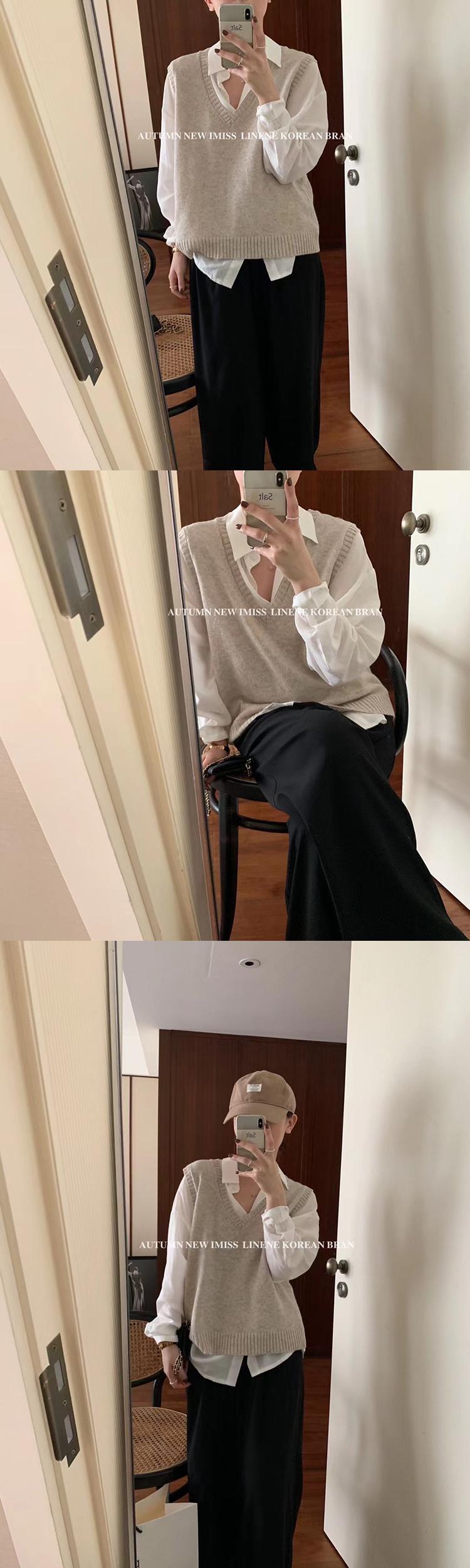 オータムルーズVネックノースリーブセーター ニット 秋物 ビッグFスモールZ韓国16570795210