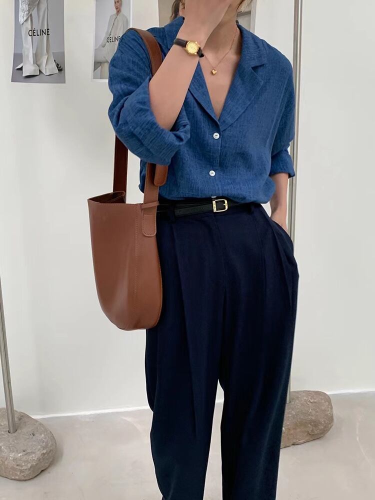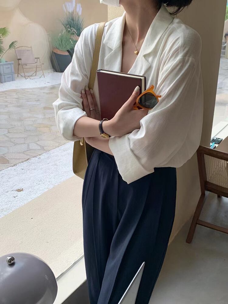 ホワイトシャツオータムソリッド カラールーズ薄手ジャケット ロング 秋物 ソリッドカラー ビッグFスモールZ韓国74160578921