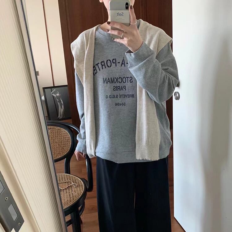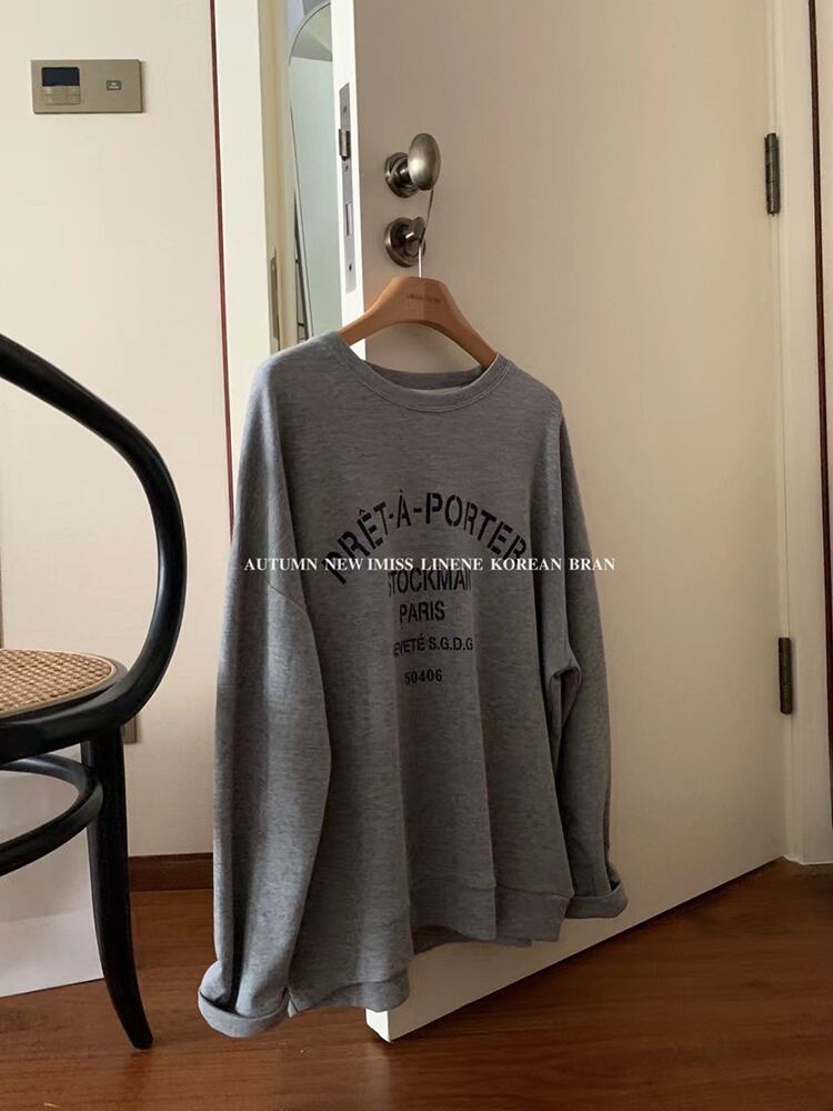 プリントセーター レディースオータムルーズラウンドネックプルオーバー ロング 秋物 Oネック ビッグFスモールZ韓国39389355527