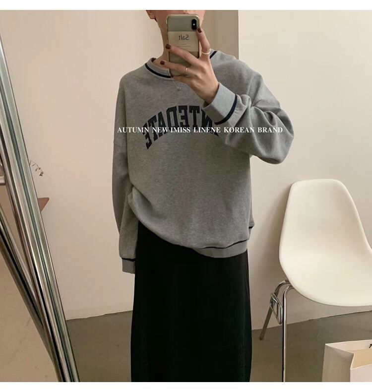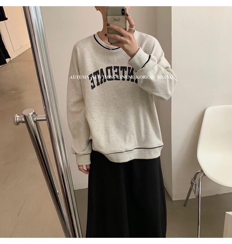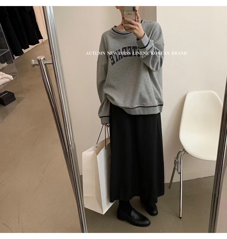 ルーズカジュアルセーター オータムラウンドネックプルオーバー ロング 秋物 Oネック ビッグFスモールZ韓国78803929591
