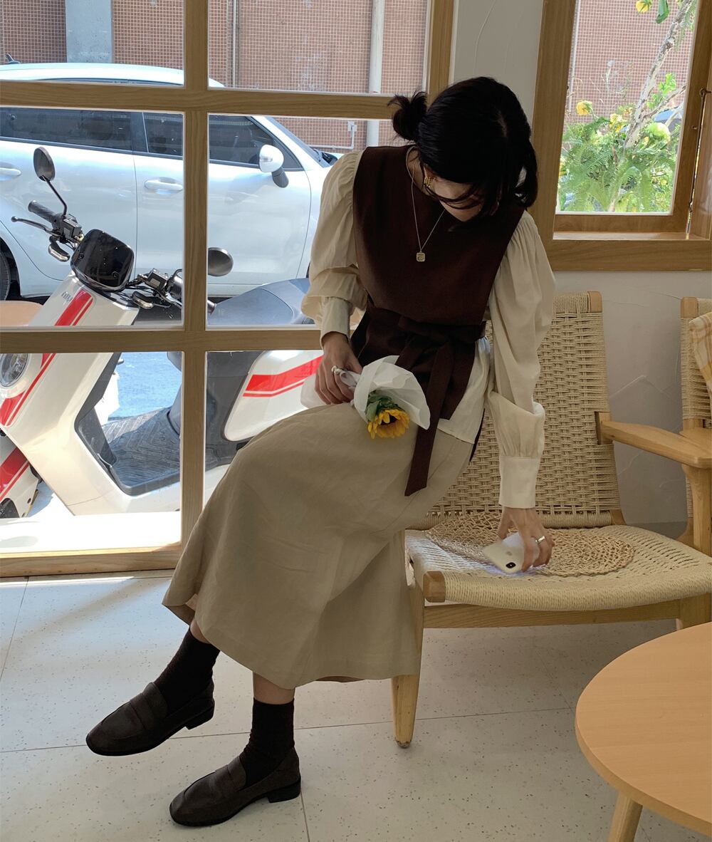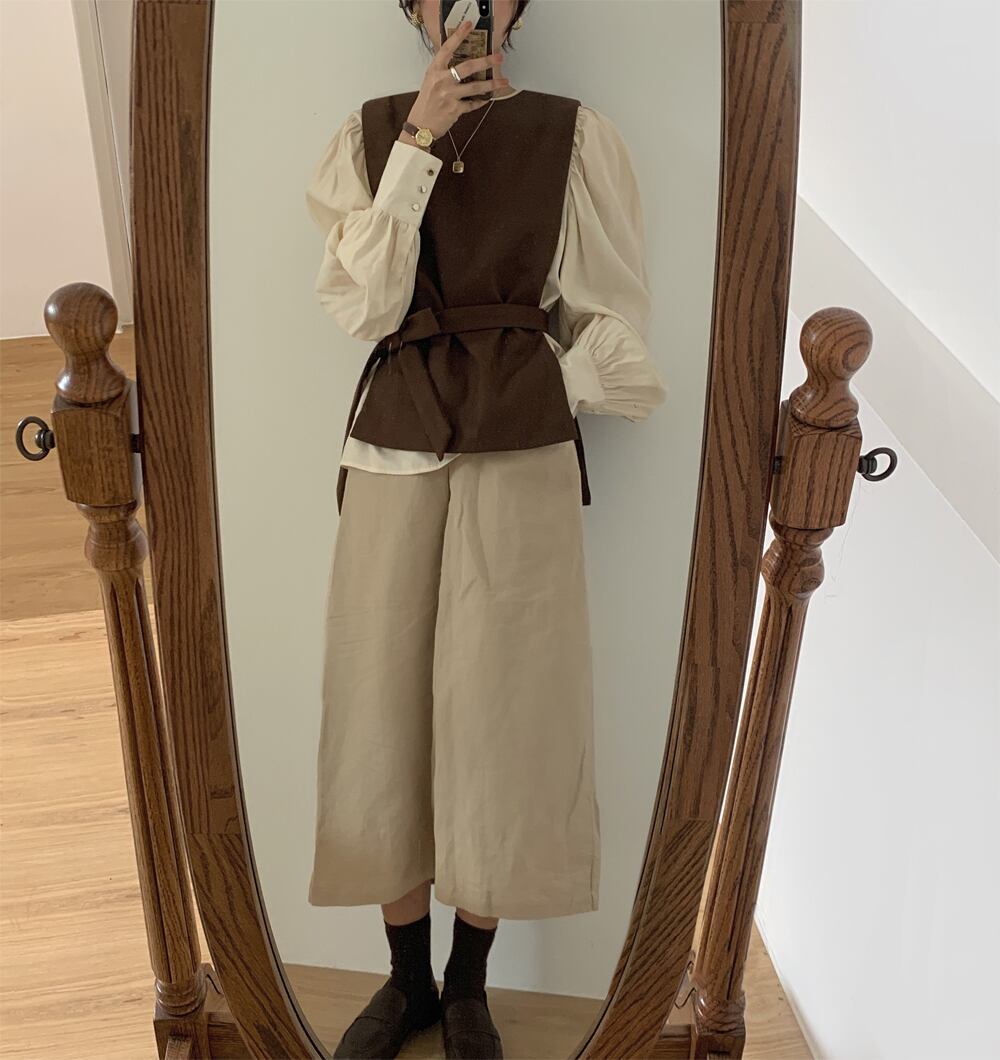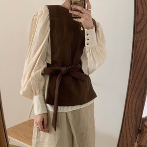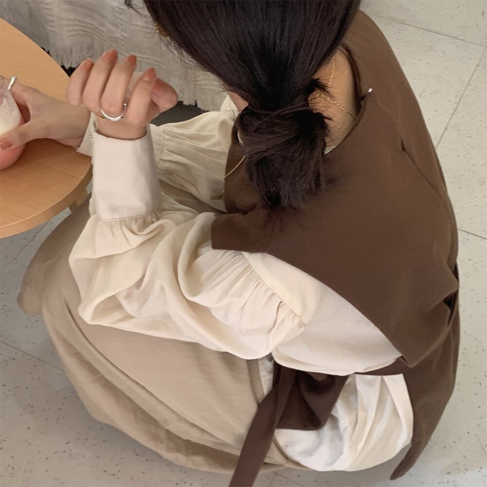 スタンダード長袖スリーブシャツ レースノースリーブ ロング リボン レトロ ビッグFスモールZ韓国13312005058