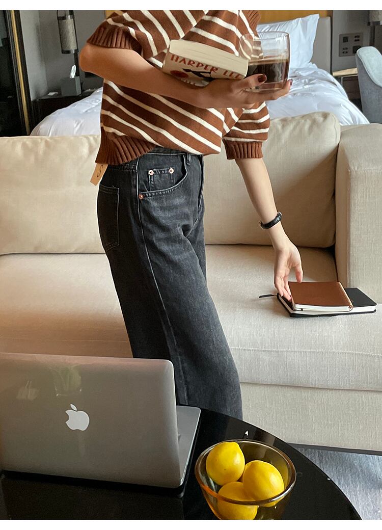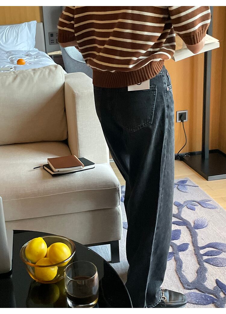 スタンダードルーズワイドレッグダークジーンズ オータム レトロ 秋物 ワイドパンツ ビッグFスモールZ韓国43612645083
