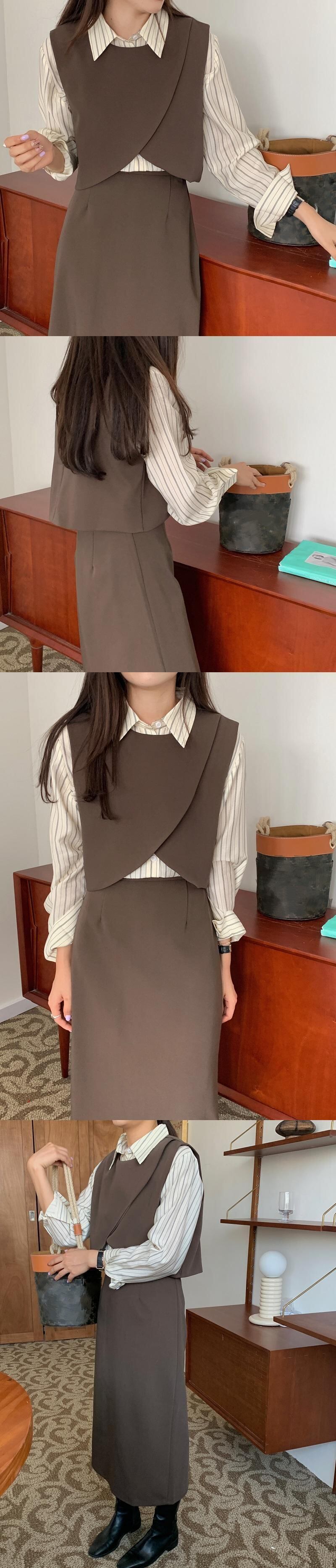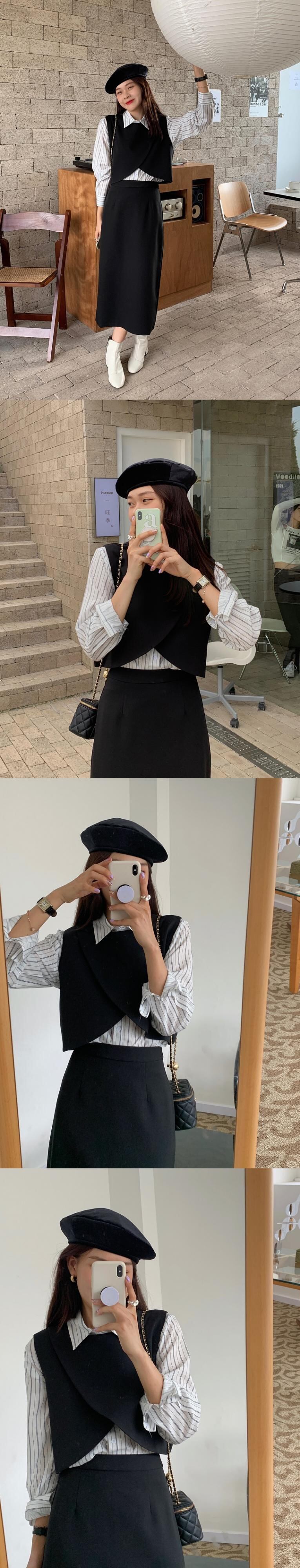 ストライプシャツ スカート オータムセット 秋物 ビッグFスモールZ韓国75114259486