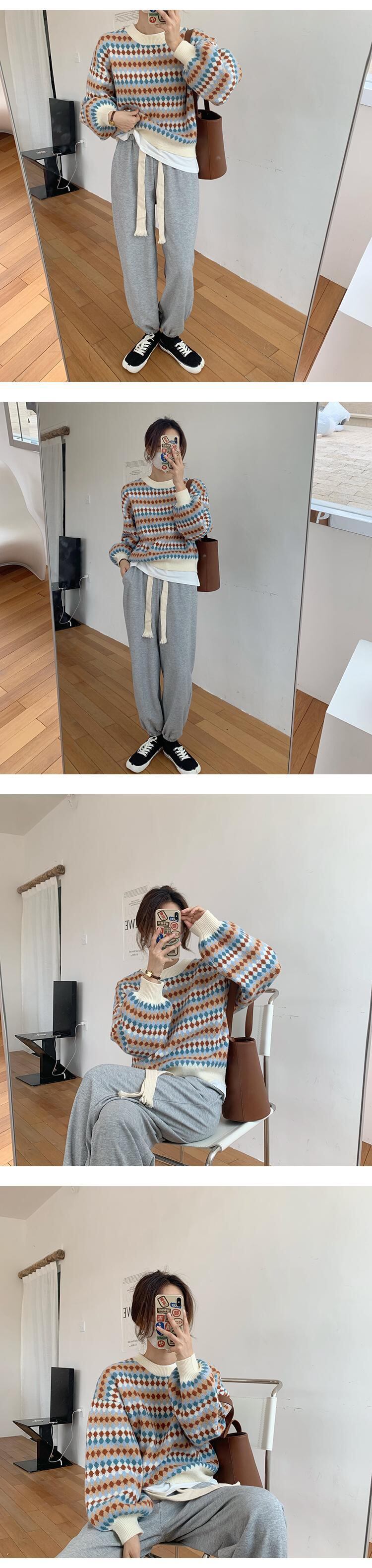 カラースタンダードセーター オータムルーズ薄手ラウンドネックスリーブ ランタンスリーブ レトロ 秋物 Oネック ビッグFスモールZ韓国59653325040