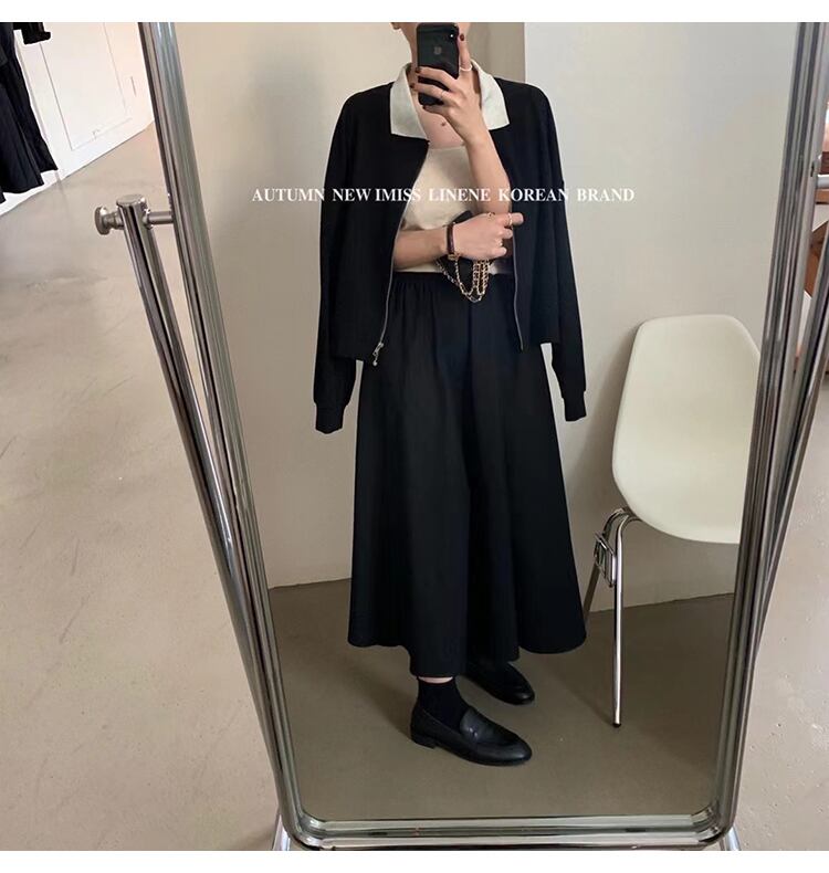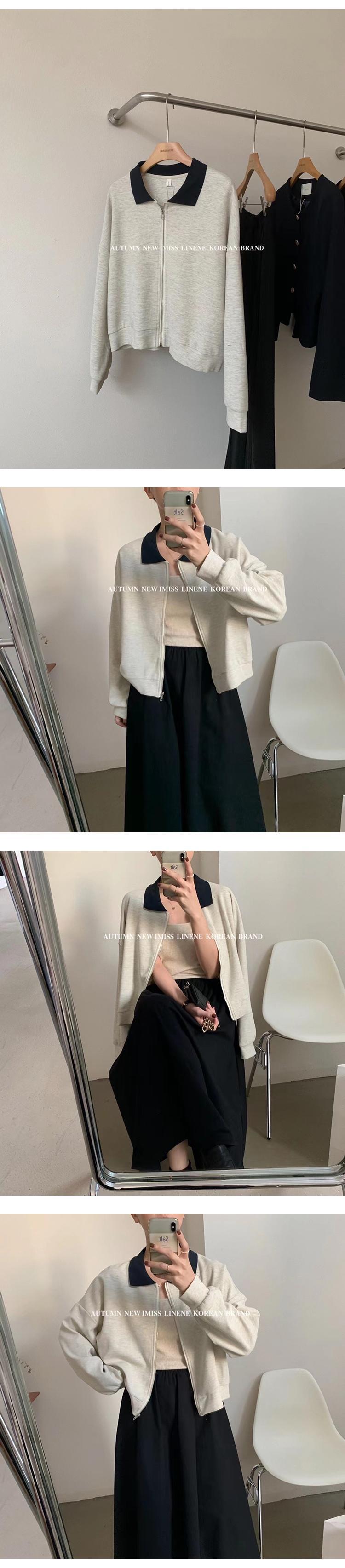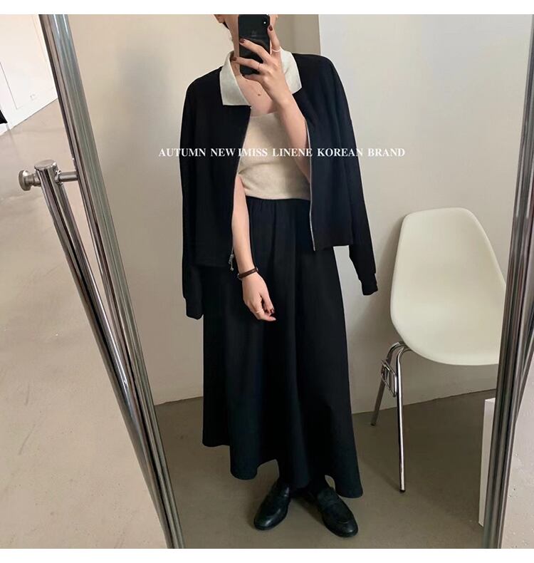 カラールーズセーター オータムスタイル長袖スリーブジッパー薄手 ロング 秋物 ビッグFスモールZ韓国51220417442