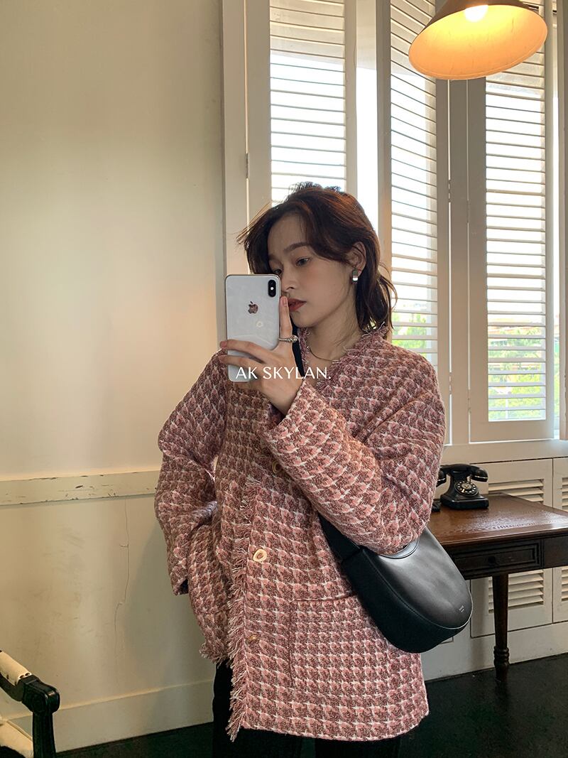 ジャケット オータムスタンダード格子柄 ロング レトロ 秋物 ビッグFスモールZ韓国91941538070