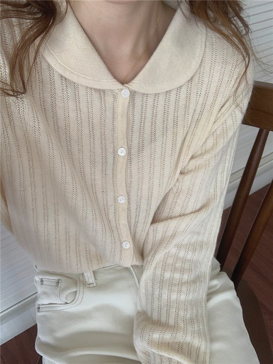 カラー薄手スリーブニットカーディガンセーター オータムスタイルロング 長袖 秋物 ビッグFスモールZ韓国92365550950