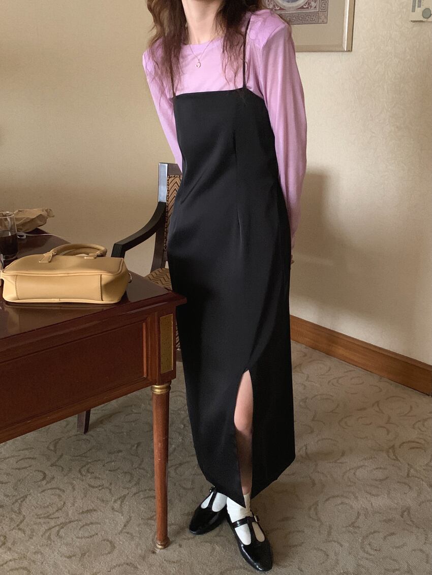 Tシャツ ベルト ブラックドレス ロング ハーネス パープル ビッグFスモールZ韓国58933872284