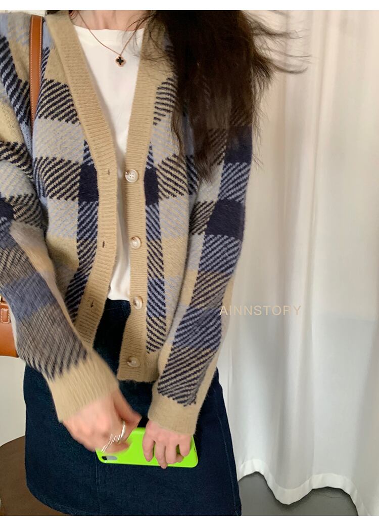 オータムトップス セーター ジャケット ニットカーディガン薄手格子柄長袖スリーブ ロング 秋物 ビッグFスモールZ韓国15979244659
