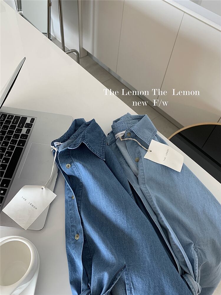ブルーシャツ ジャケット スプリングオータムカジュアルルーズカラー ロング 春物 秋物 ビッグFスモールZ韓国29735178664