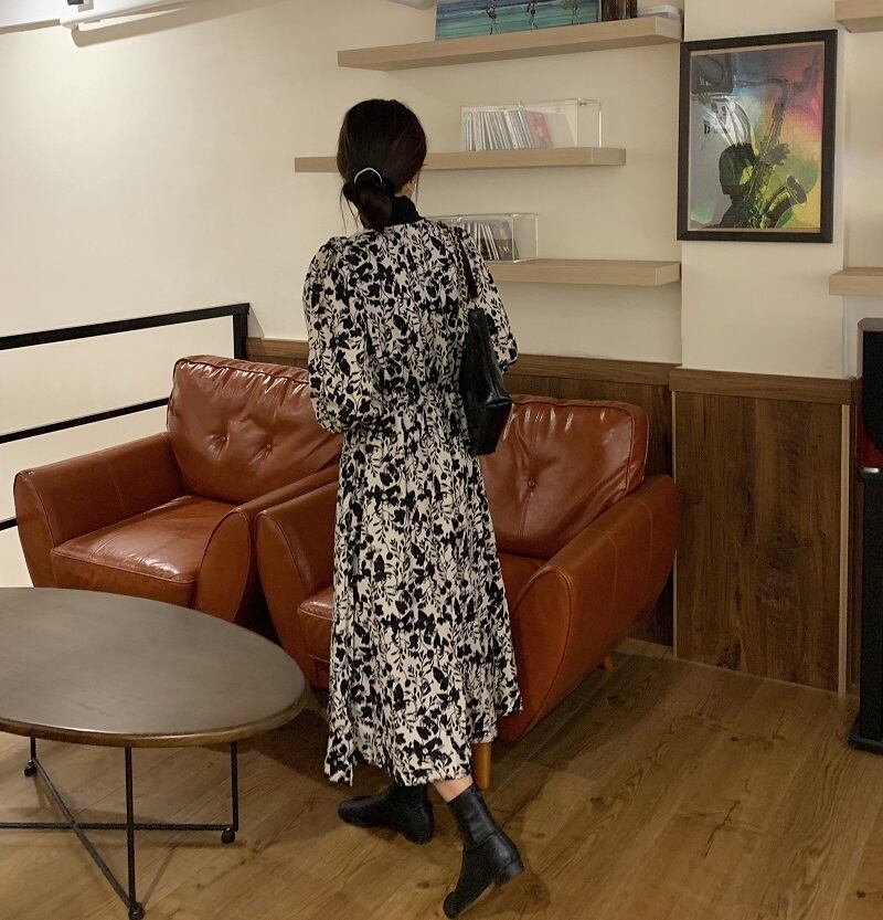 カラーフローラルスカート オータムウィンターロングレディース 秋物 冬物 花柄 ステッチ ビッグFスモールZ韓国91399694073