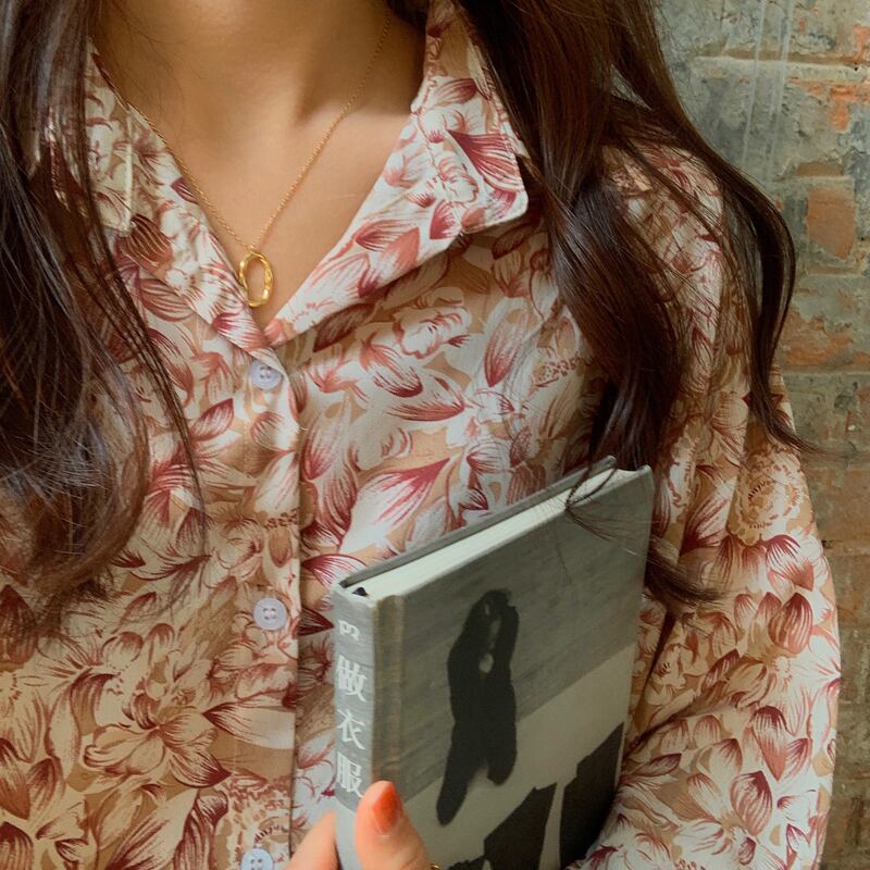 ルーズフローラルシャツ カラースタンダード ロング レトロ 花柄 ビッグFスモールZ韓国21960673348