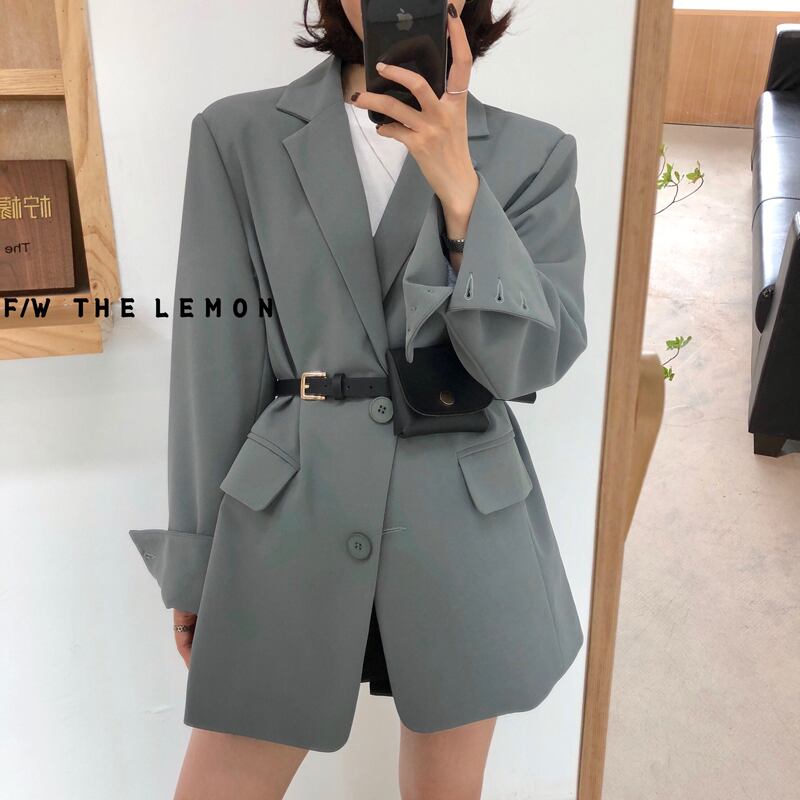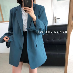 ブルーソリッド カラージャケット ルーズトップス オータムレディース 秋物 ソリッドカラー ビッグFスモールZ韓国74773632646