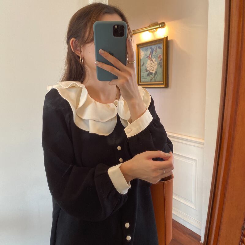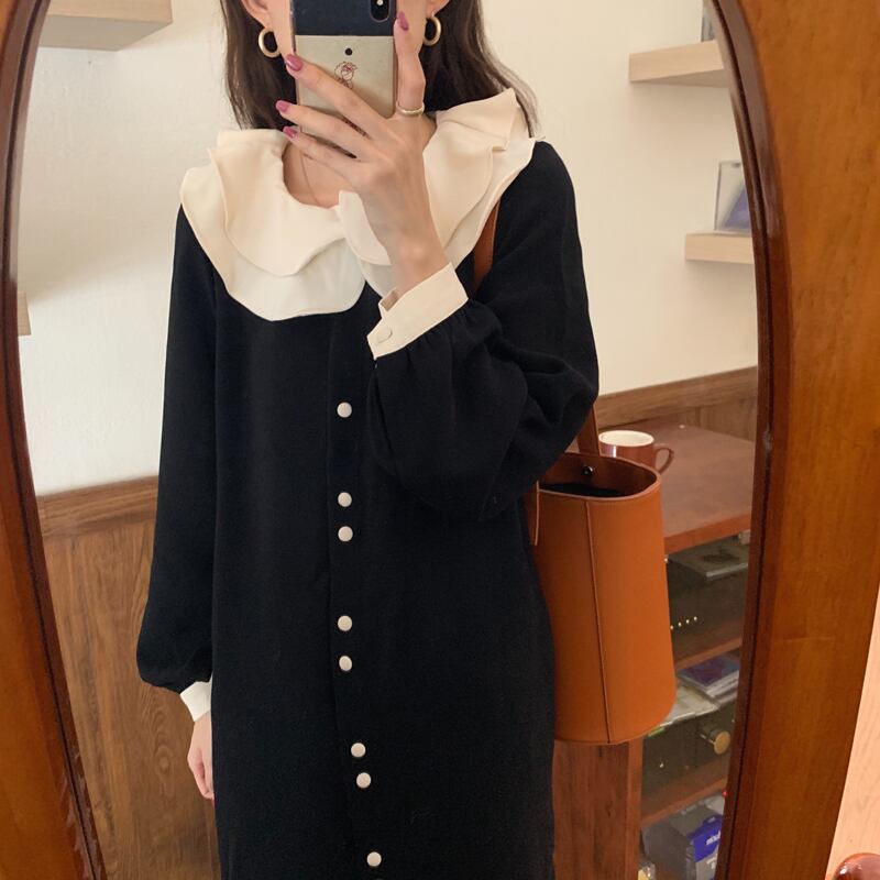 カラーボタンドレス レディース 大人ガーリー スウィート キュート カジュアル ビッグFスモールZ韓国79651853827