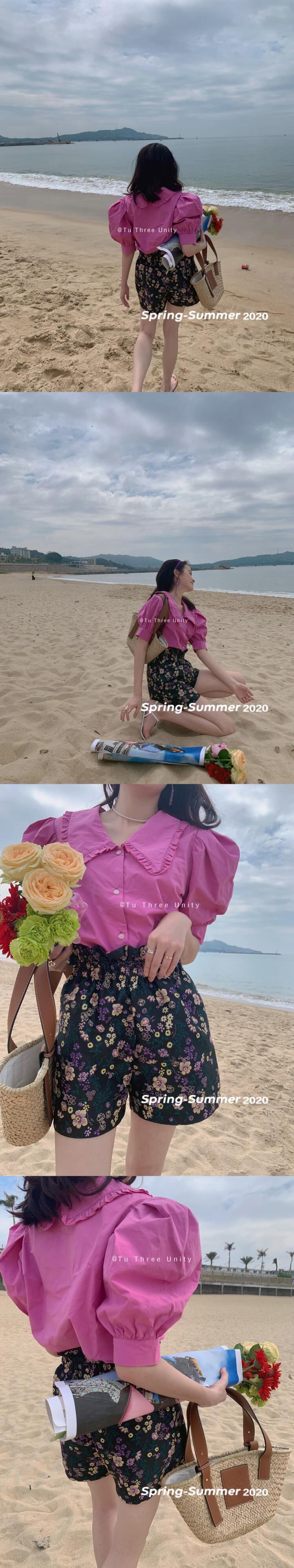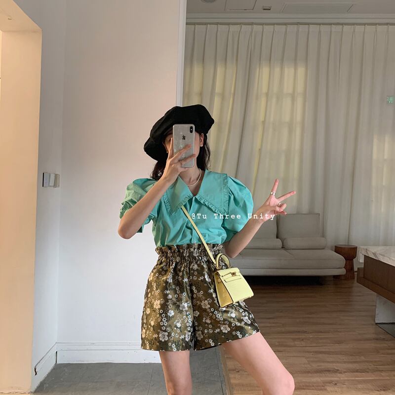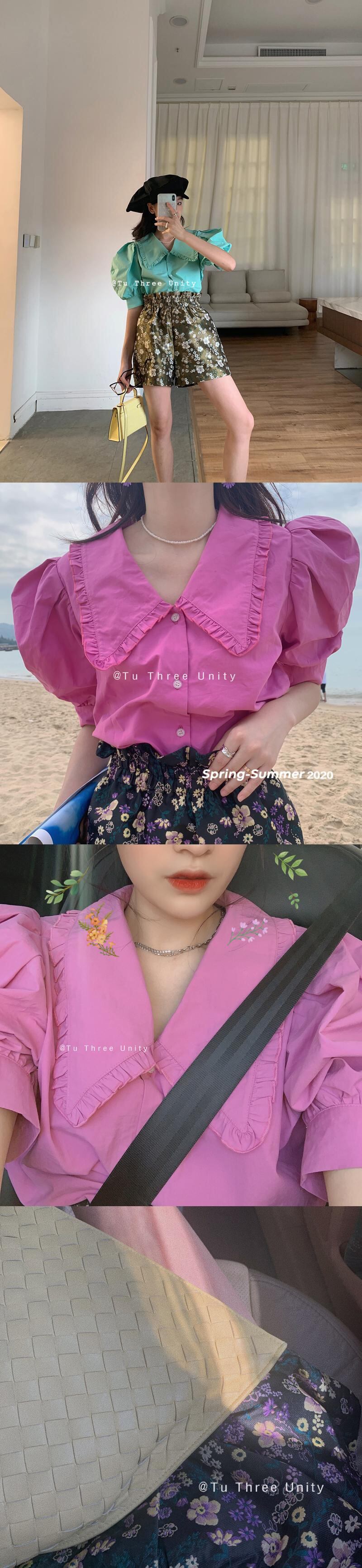 カラーレーススタンダードスリーブソリッド シャツ サマートップス レディース レトロ 夏物 ソリッドカラー ビッグFスモールZ韓国33296010047
