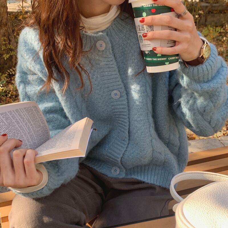 カラーニットカーディガンジャケット ショートセーター レディース ビッグFスモールZ韓国23976390733