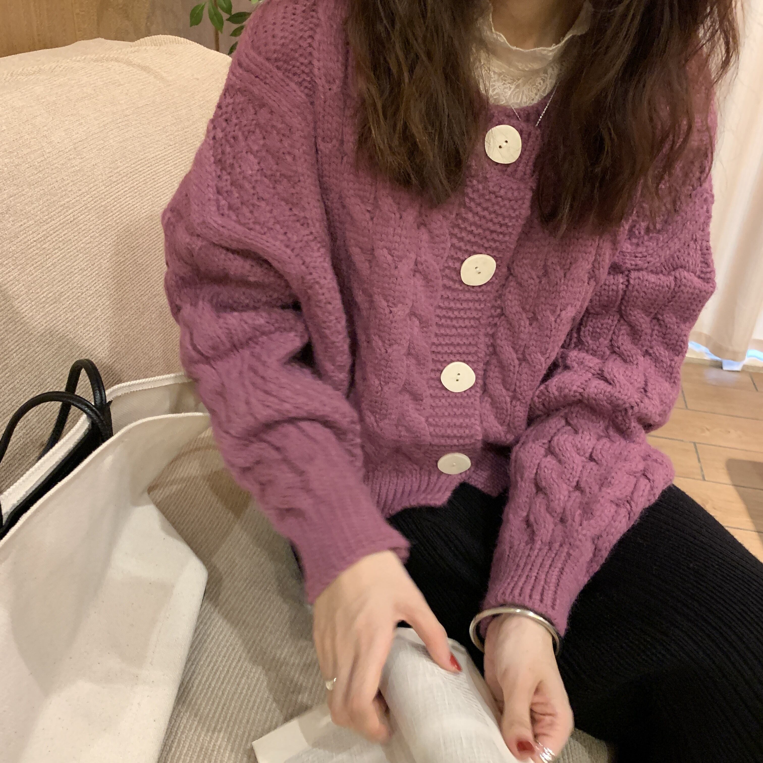 スタンダードセーター ボタンニットカーディガンショートコート オータム レトロ 秋物 ビッグFスモールZ韓国13632508267
