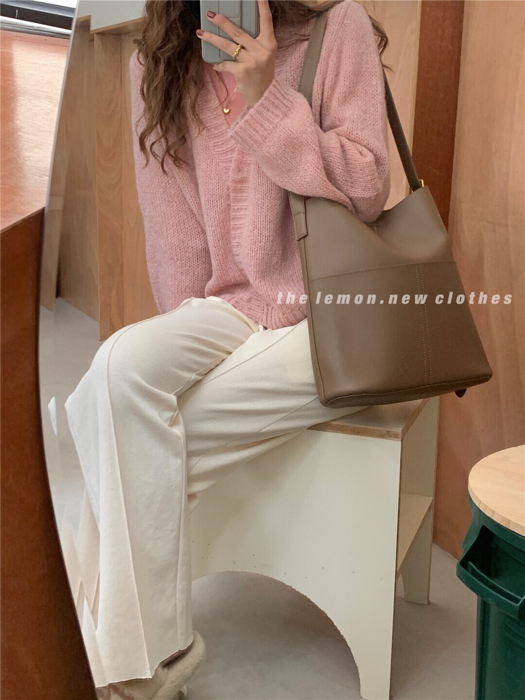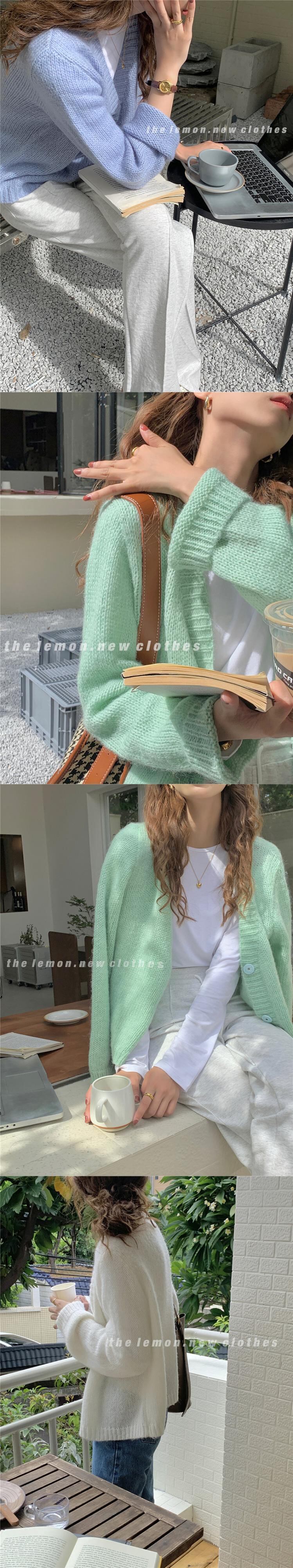 カラーソリッド Vネックニットカーディガンジャケット セーター レディース ソリッドカラー ビッグFスモールZ韓国51864182916