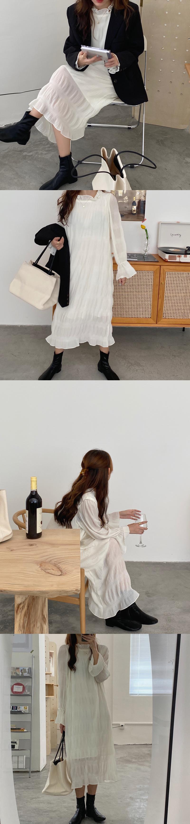 ドレス オータムスタイル長袖スリーブAラインスカート ロング ホワイト 秋物 ビッグFスモールZ韓国82333862972