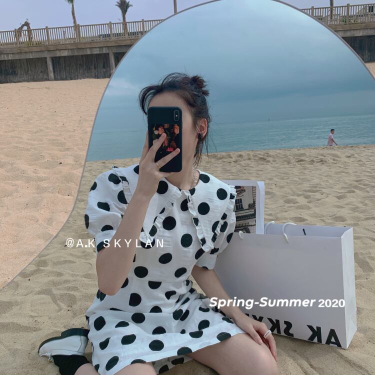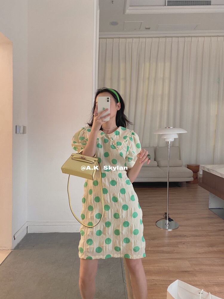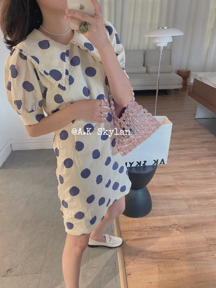 スタンダード水玉レースカラードレス レトロ 大人ガーリー スウィート キュート カジュアル ビッグFスモールZ韓国14442609298