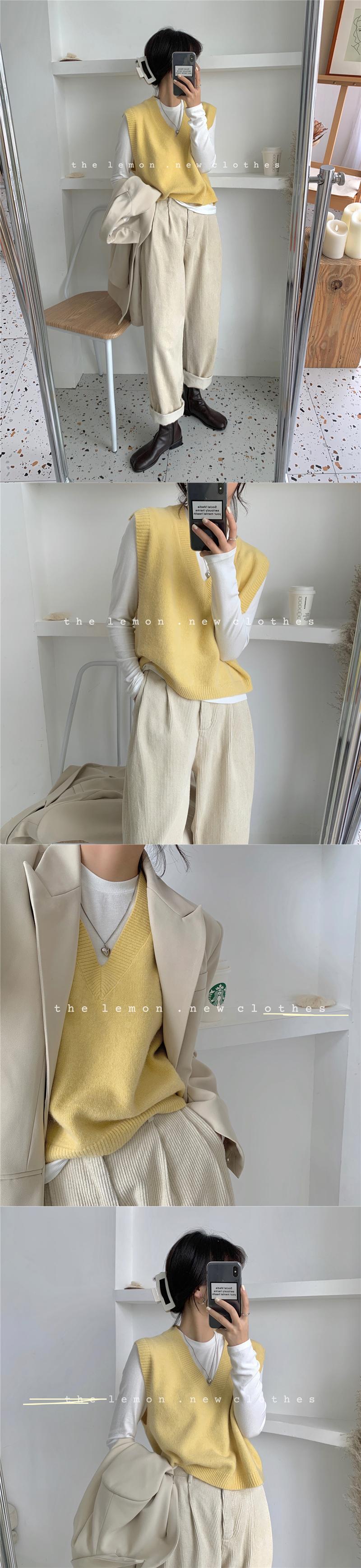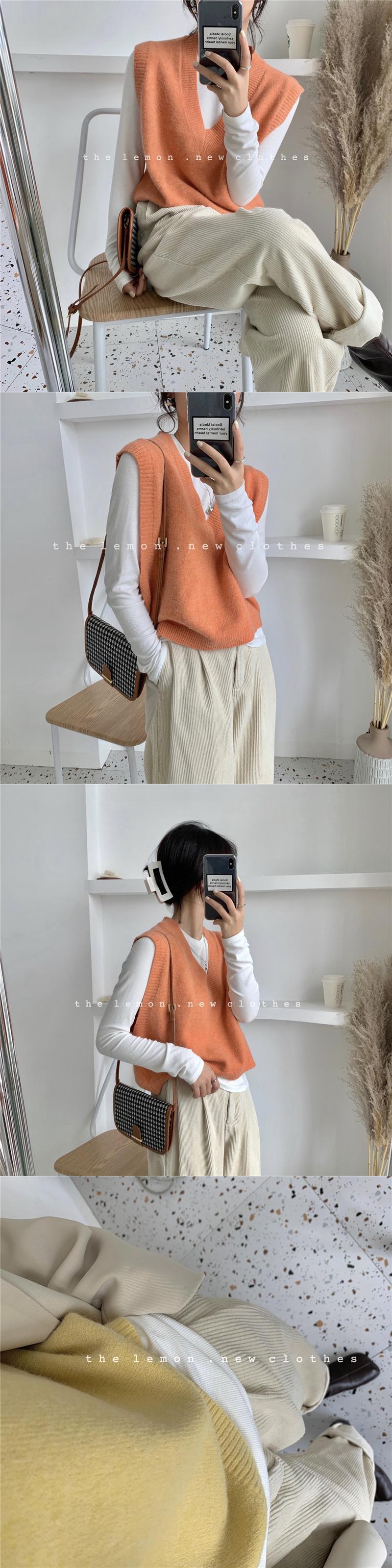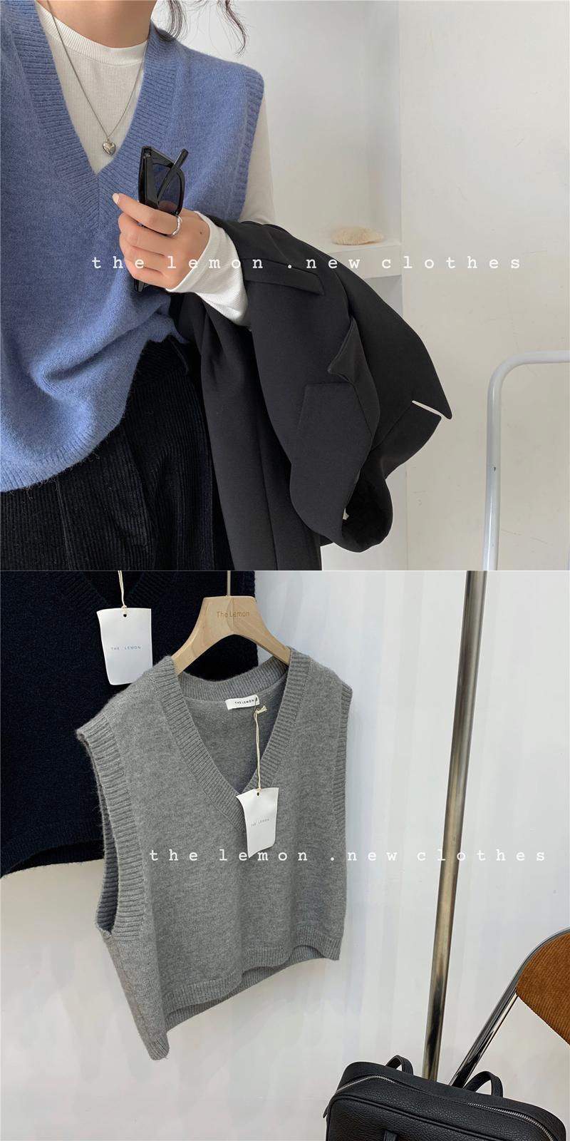 スタンダードVネックノースリーブニットセーター オータム レトロ 秋物 ワイドショルダー ビッグFスモールZ韓国88115286460