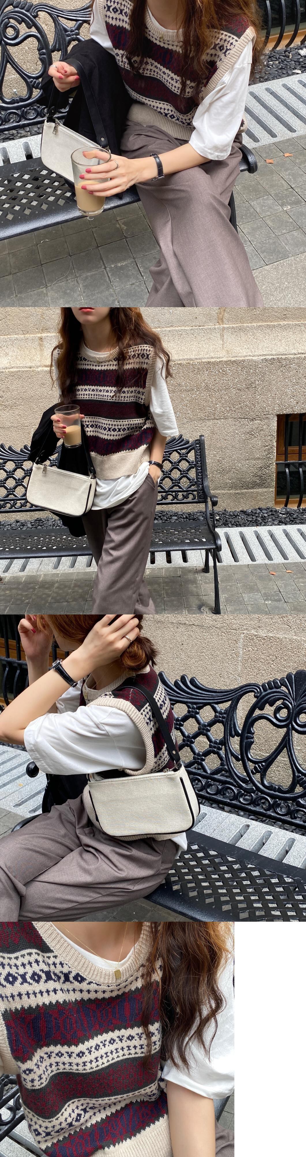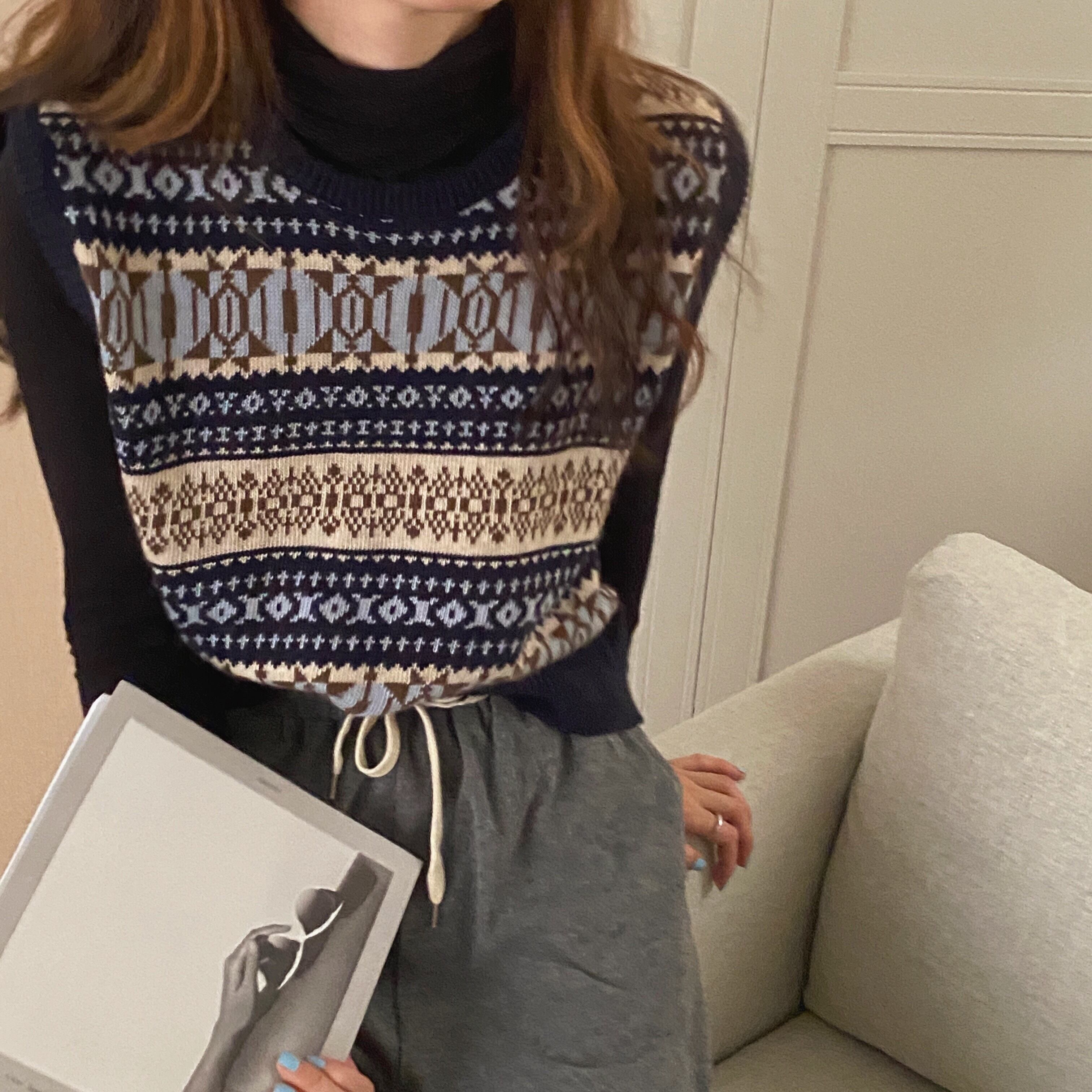 スタンダードニットパターンラウンドネックプルオーバー トップス レディース レトロ Oネック ビッグFスモールZ韓国38539904425