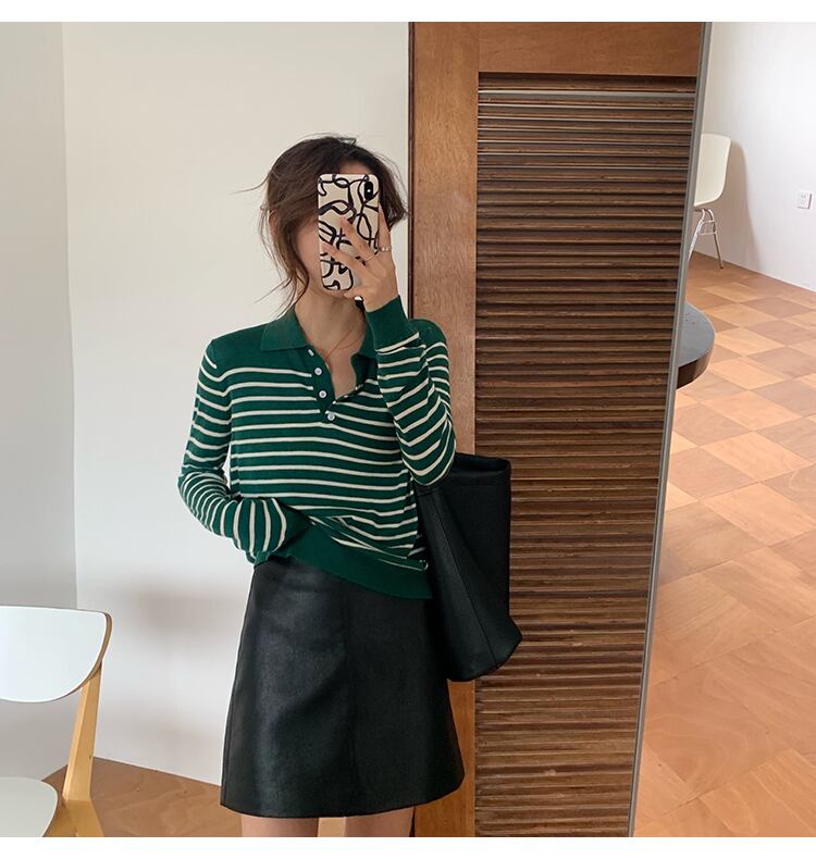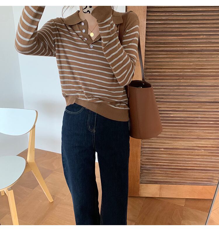 薄手ストライプシャツ レディースオータムカジュアルルーズニットセーター トップス ロング 秋物 ビッグFスモールZ韓国83252706207