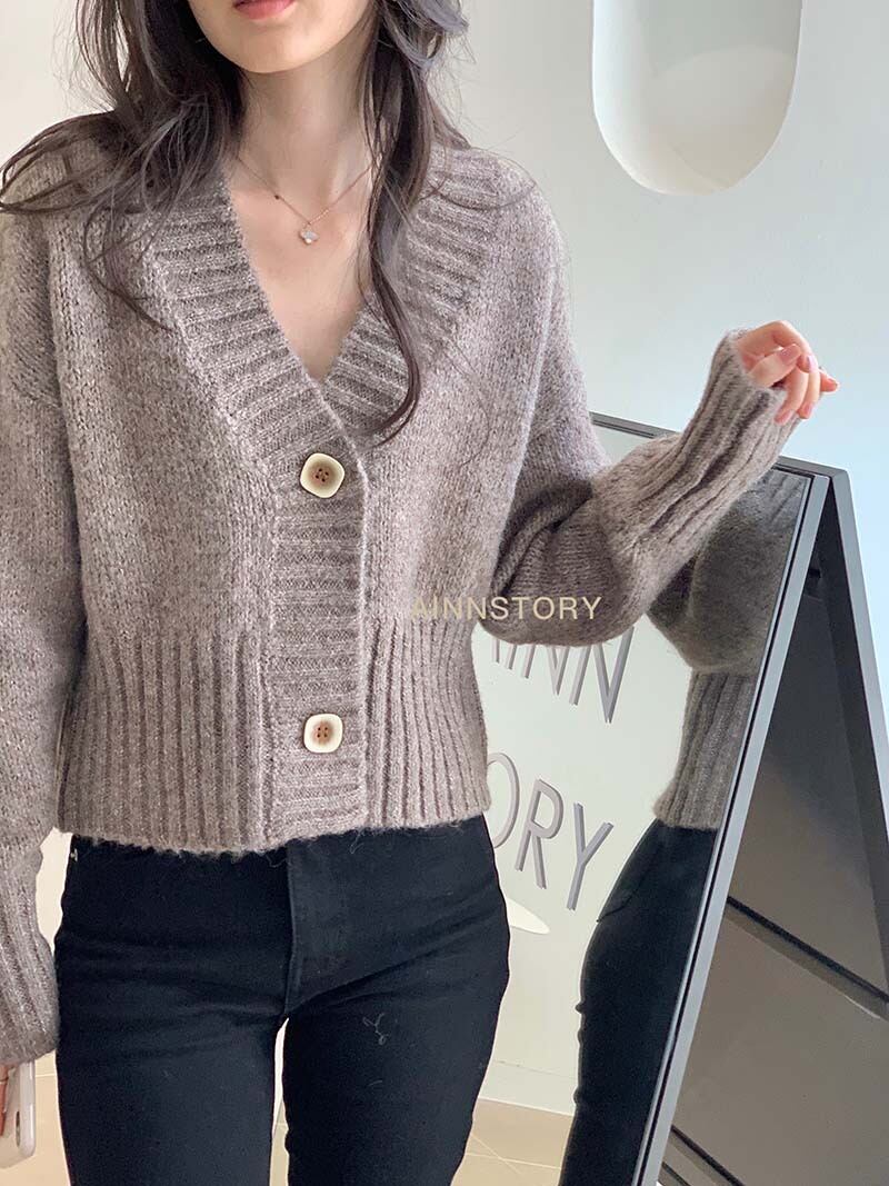 カーディガンセーター スプリングオータムスタンダード薄手長袖スリーブVネックコート ロング レトロ 春物 秋物 ビッグFスモールZ韓国36270021768