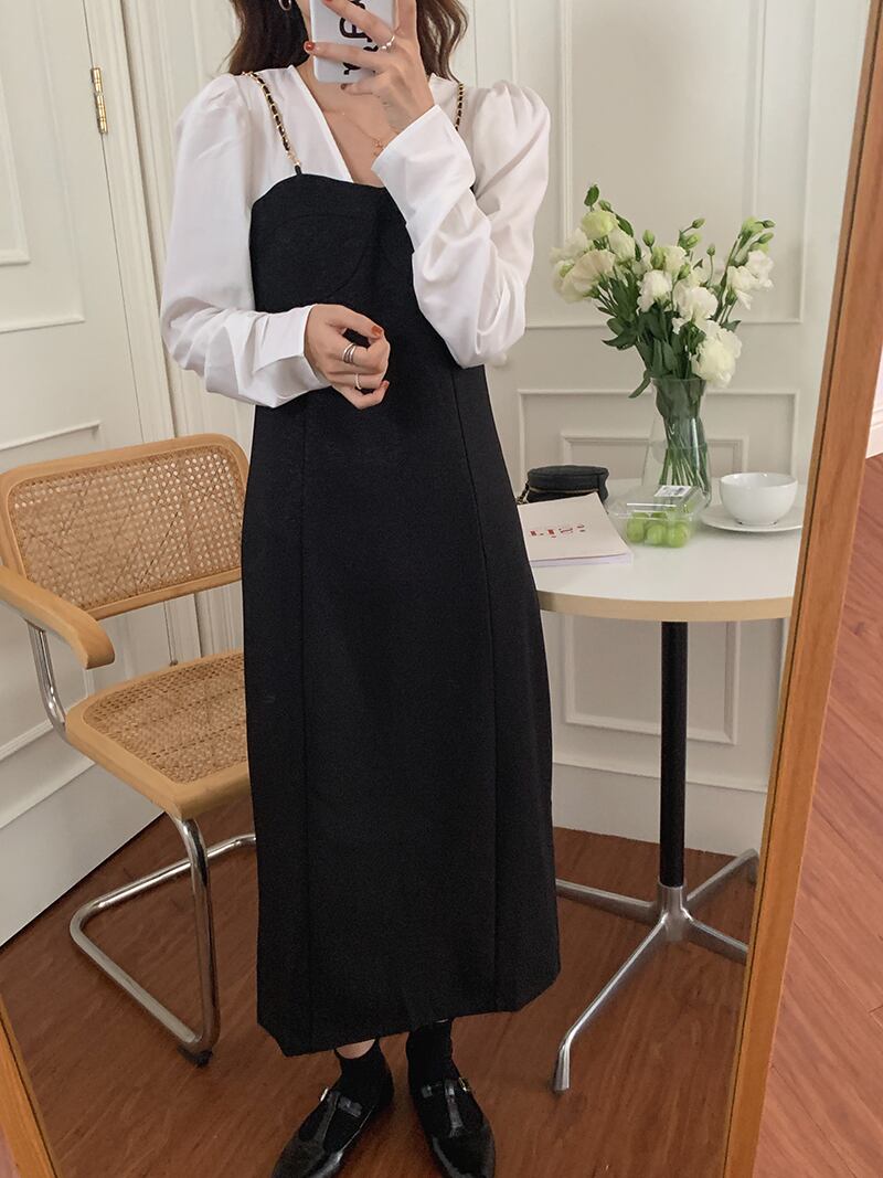 ドレス カラーチェーン スリムオータム ロング 秋物 ステッチ ビッグFスモールZ韓国43738836637