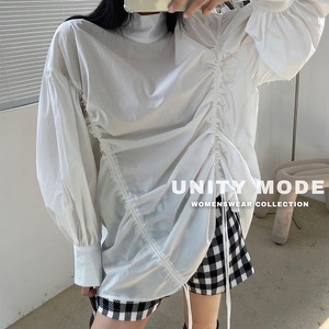 スリーブギャザーシャツ レディーススプリングオータムルーズ長袖カラーホワイトジャケット ロング 春物 秋物 ピュア ビッグFスモールZ韓国82291641291