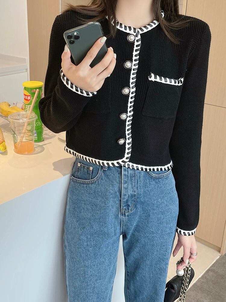 カーディガンセーター コート オータムショートスタイルカラーウール ロング 秋物 ビッグFスモールZ韓国17082045186