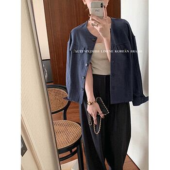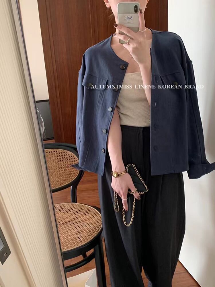 ラウンドネックジャケット オータムソリッド カラースリムコート ロング 秋物 Oネック ソリッドカラー ビッグFスモールZ韓国61902387885