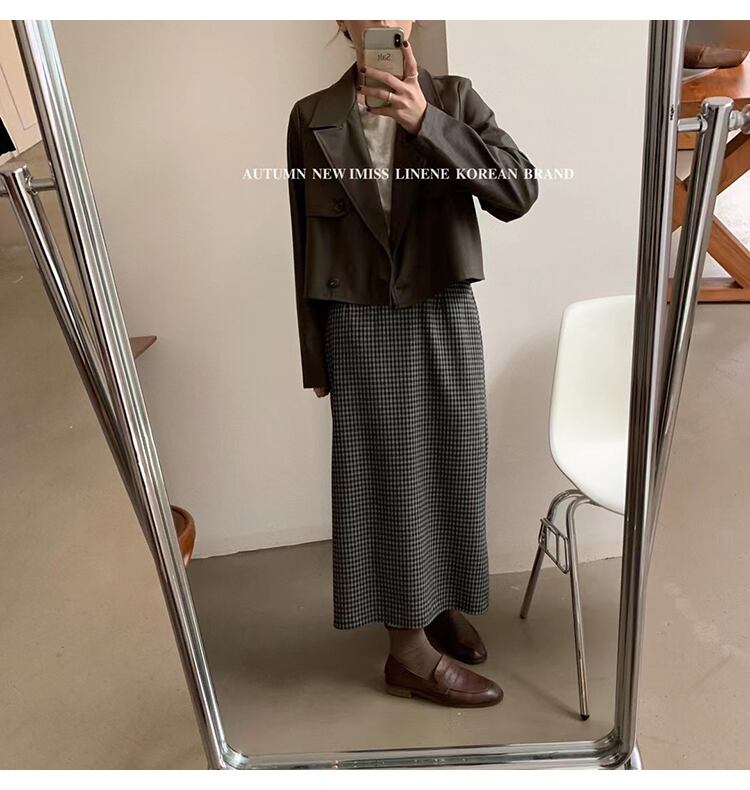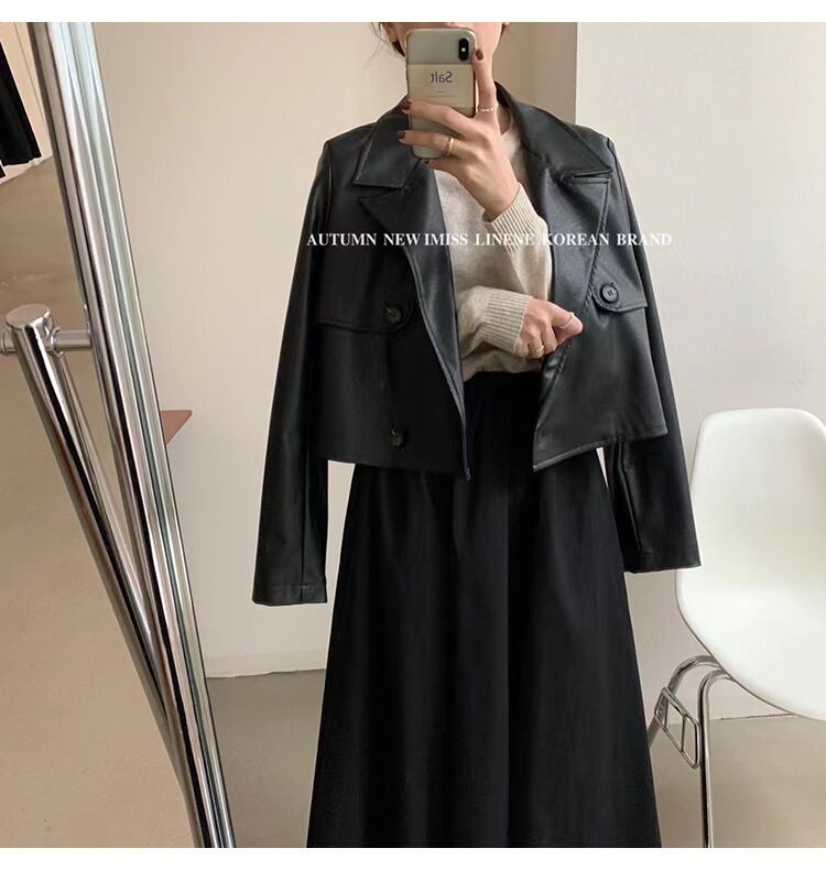 レザーショートジャケット オータムウィンタースタンダードルーズカラー ロング レトロ 秋物 冬物 ビッグFスモールZ韓国41405460711
