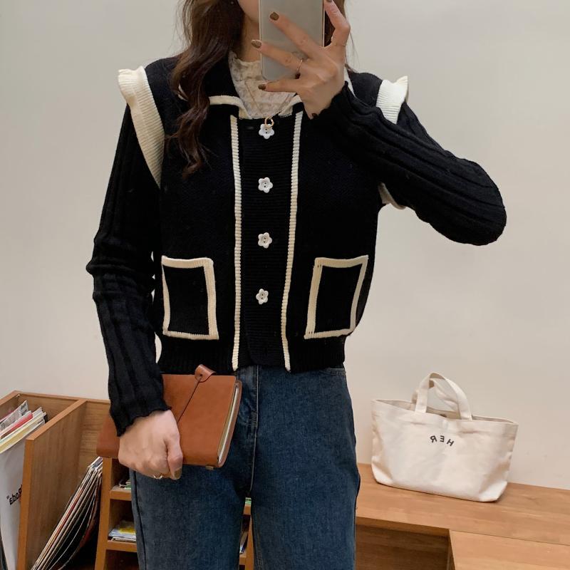 セーター カーディガンオータムスタンダードショートグレーニットジャケット ロング レトロ 秋物 ビッグFスモールZ韓国12619186366
