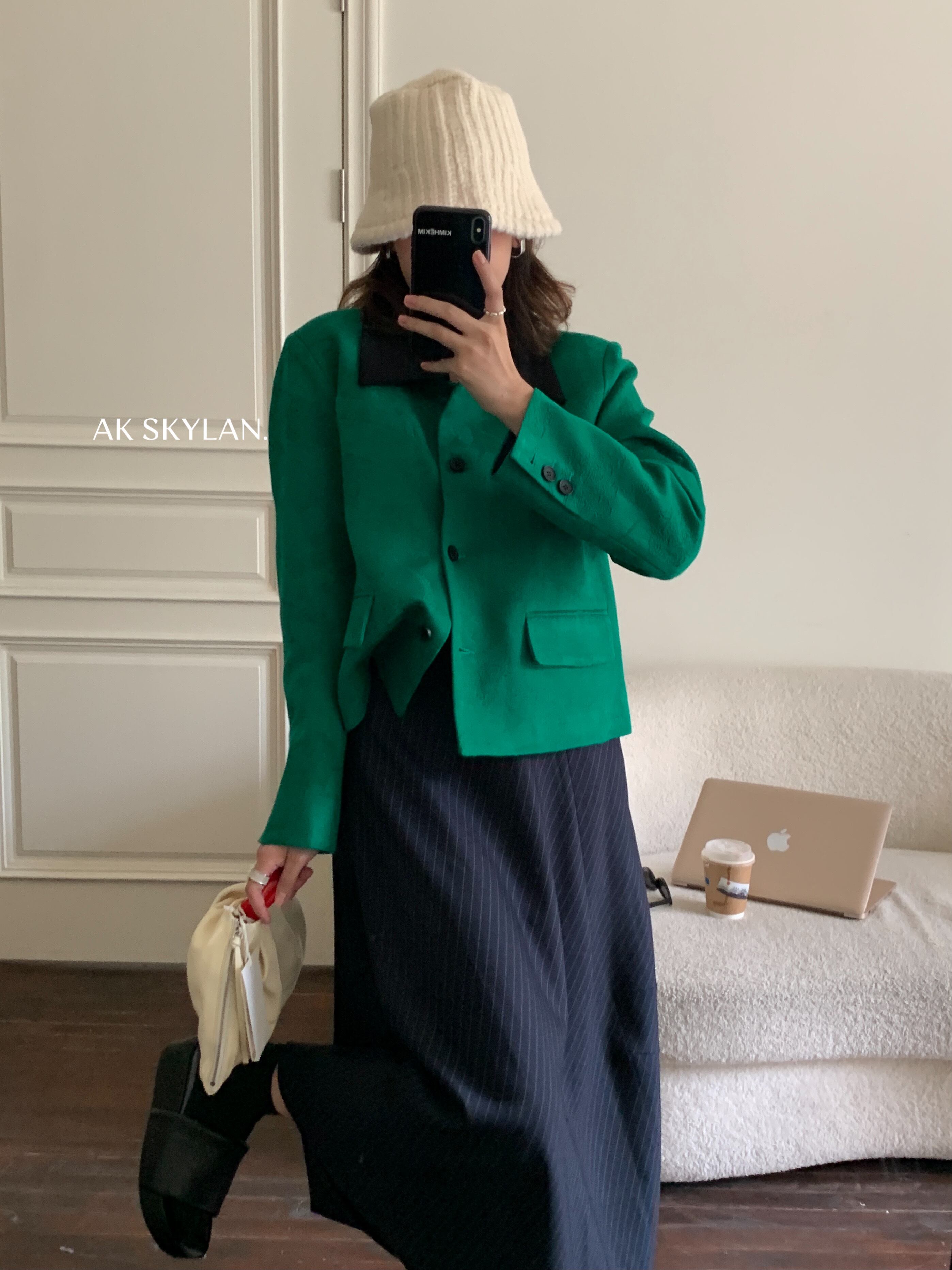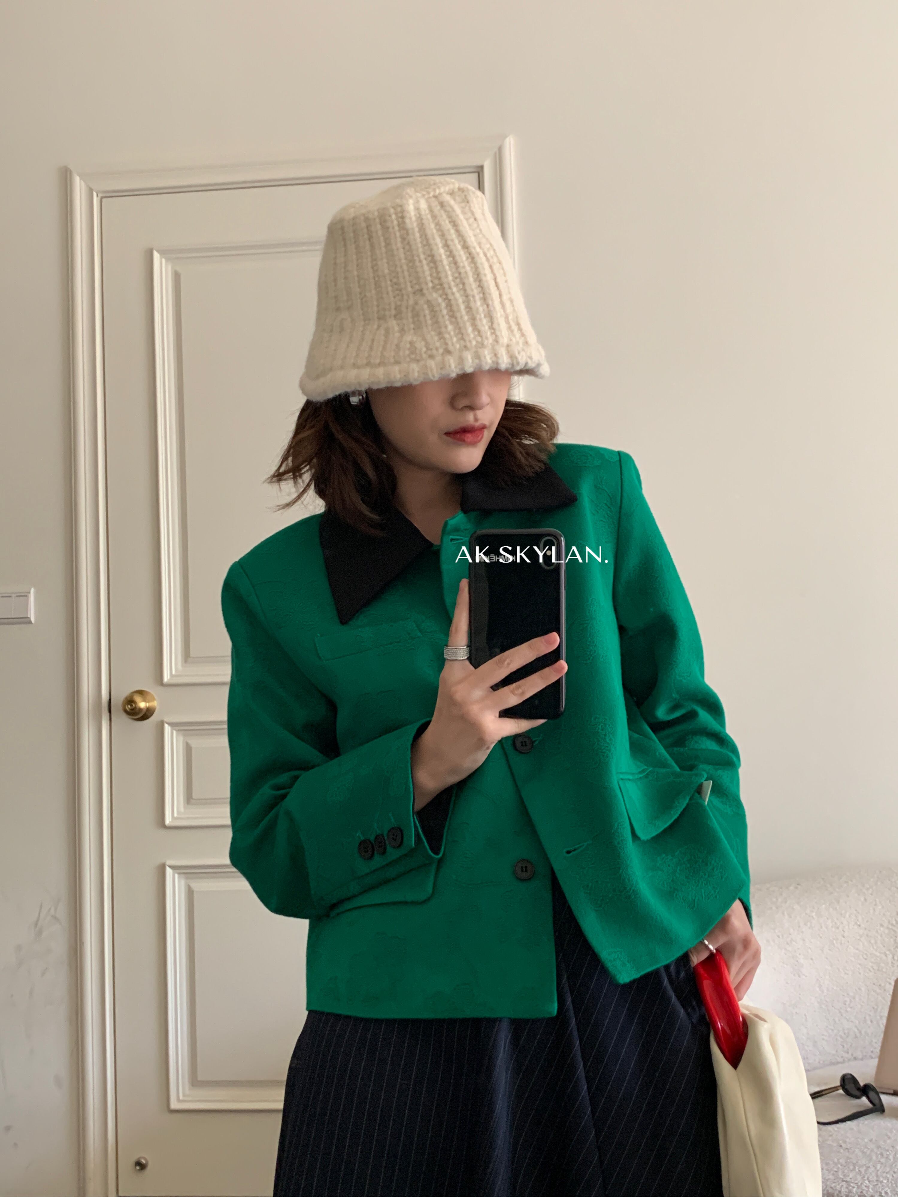 ダークパターンジャカードショートジャケット スプリングオータムカジュアルルーズ薄手グリーン 春物 秋物 ビッグFスモールZ韓国38580791205