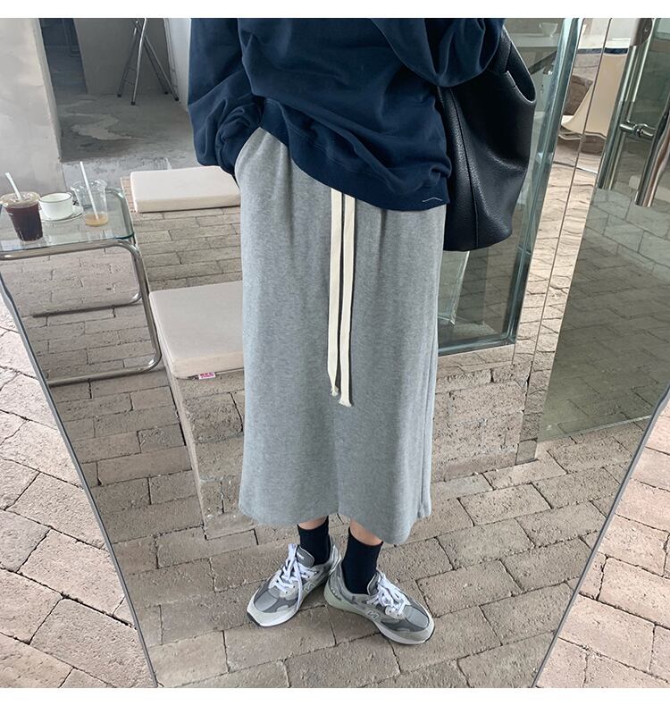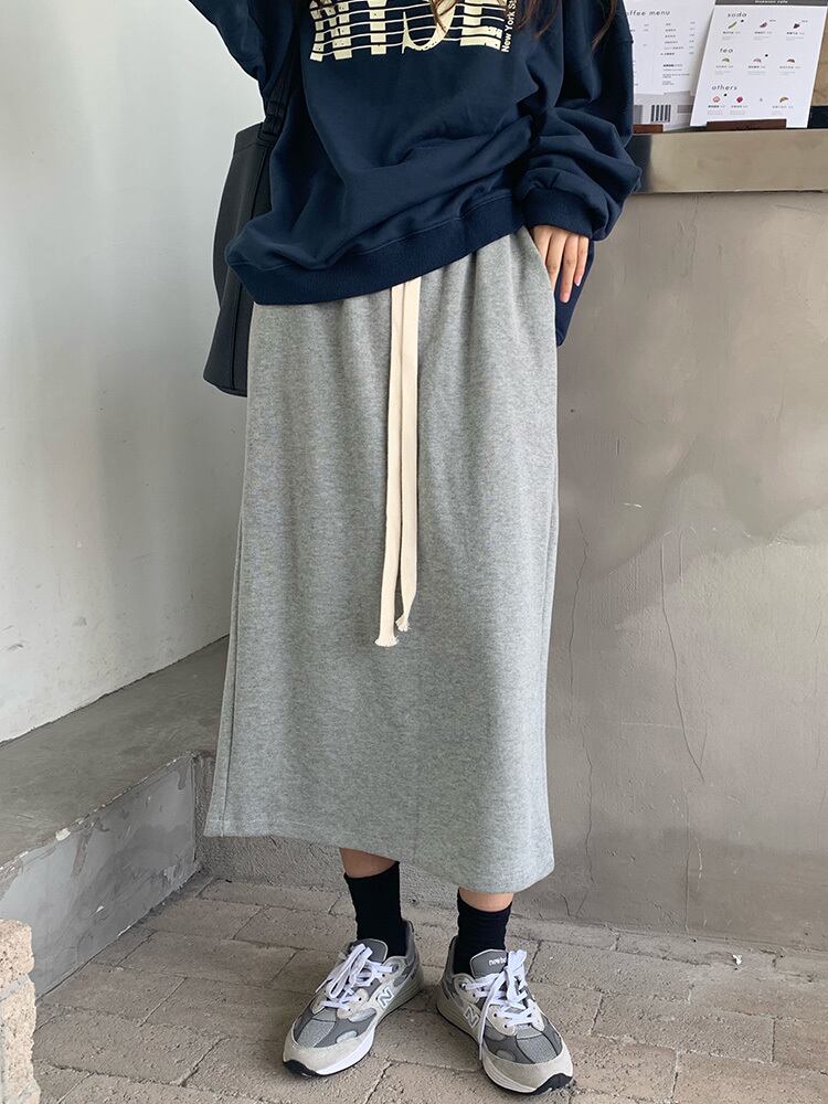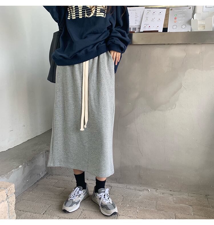 カジュアルスカート セーター レディースオータムスタイルストレッチウェストポケット レース エラスティック 伸縮 秋物 レースアップ ビッグFスモールZ韓国1032927561
