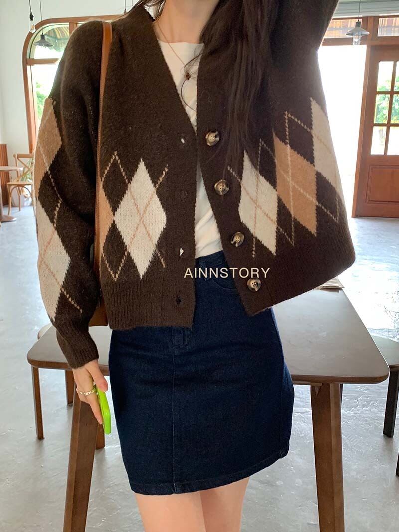 スタンダードカーディガンジャケット レディースオータムVネック長袖スリーブルーズニットセーター ロング レトロ 秋物 ビッグFスモールZ韓国58725582948