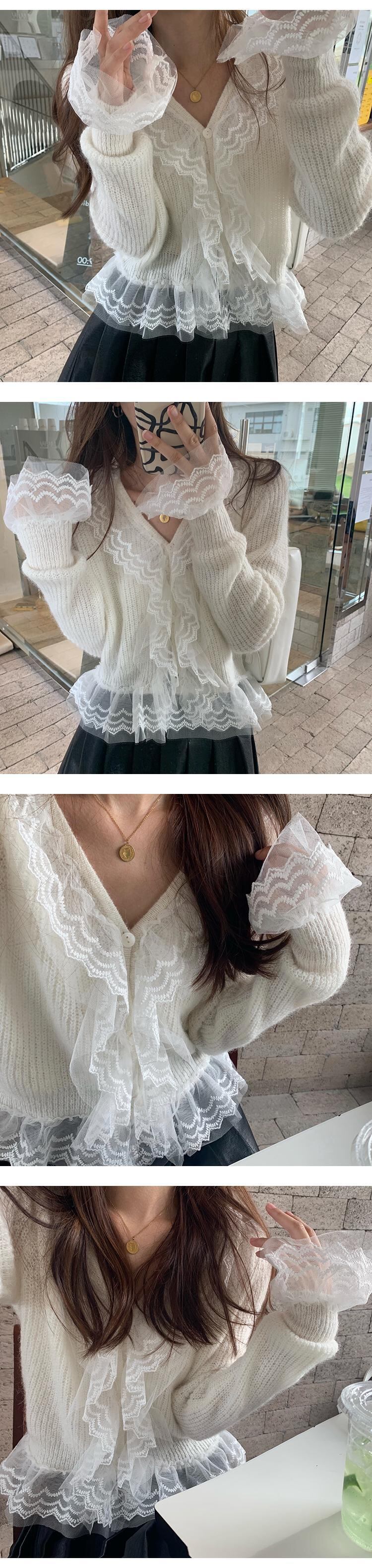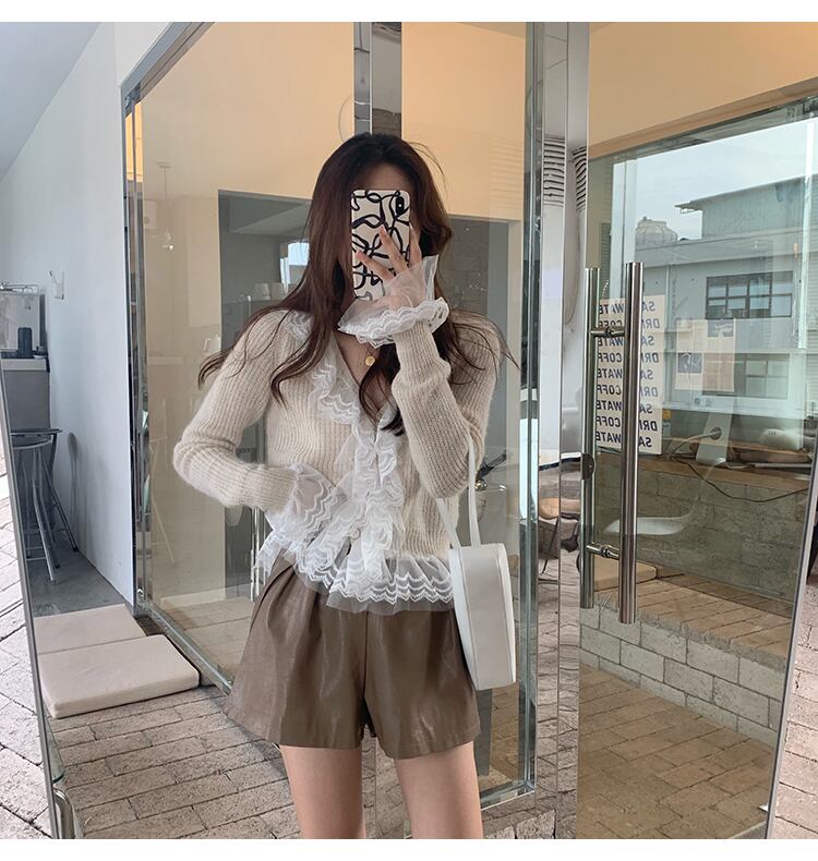レースセーター オータムスタンダードルーズVネックソリッド カラーカーディガントップス レトロ 秋物 ソリッドカラー ビッグFスモールZ韓国37436315783