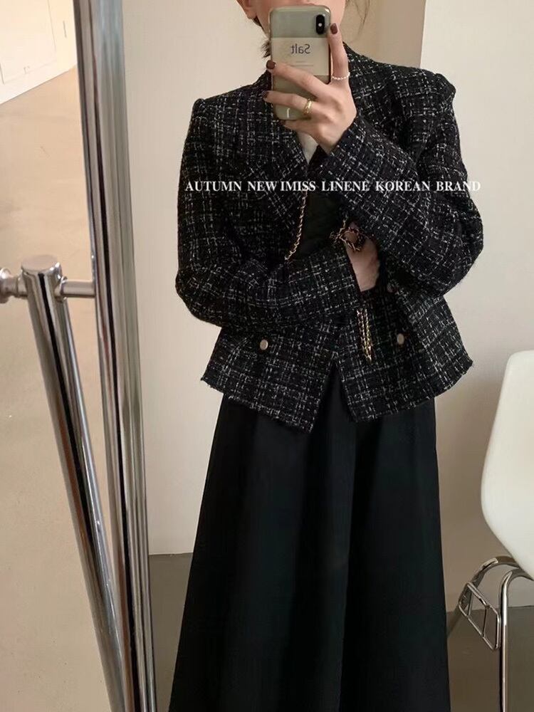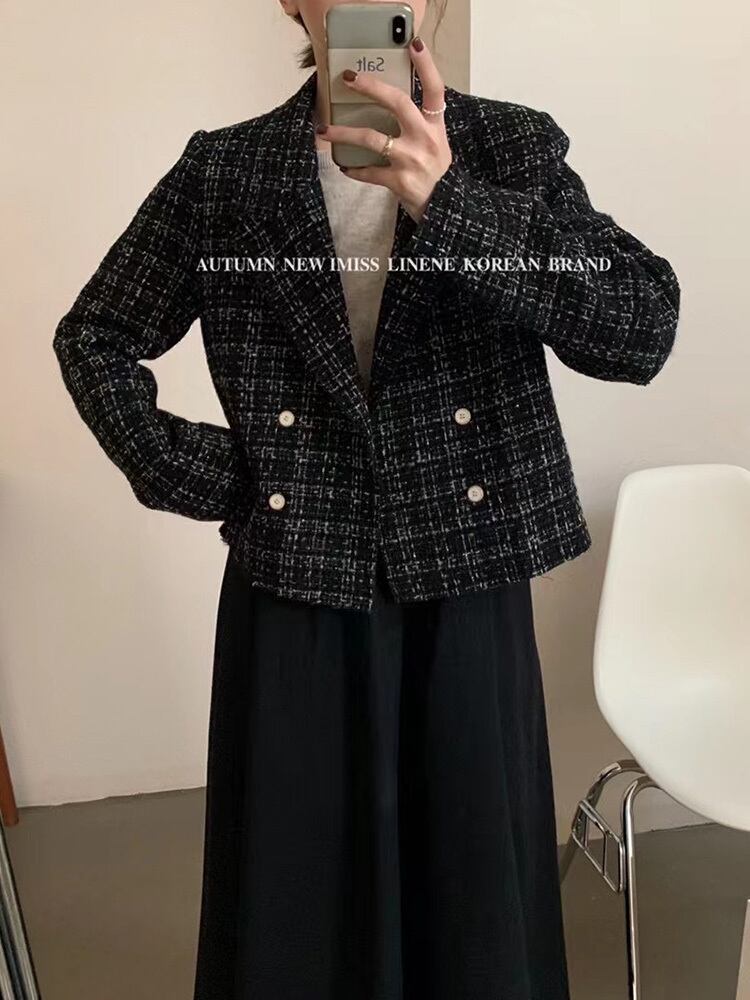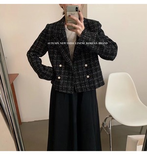 ショートジャケット スプリングオータム長袖スリーブカラーダブルブレストニット ロング 春物 秋物 ビッグFスモールZ韓国60903218329