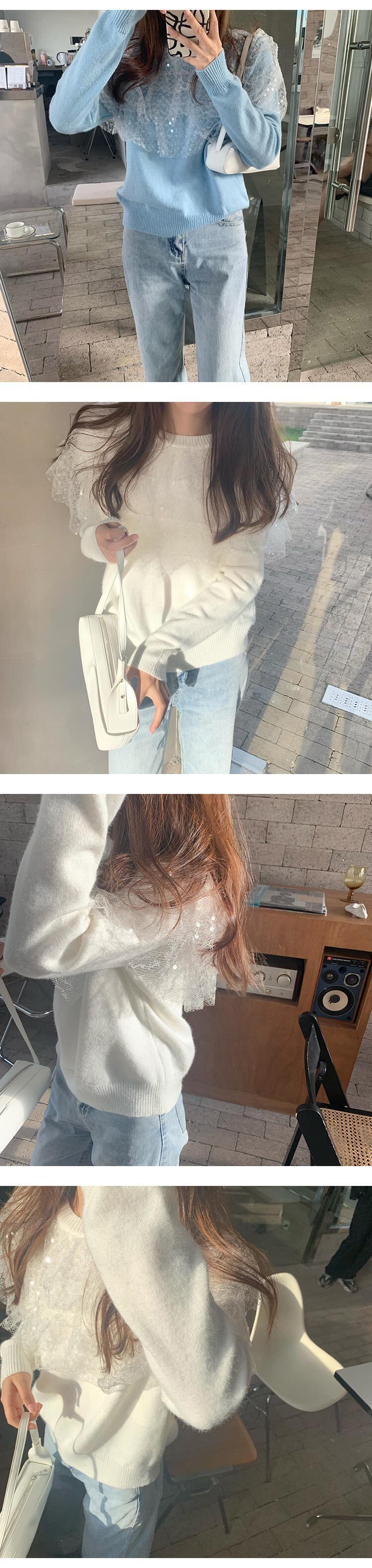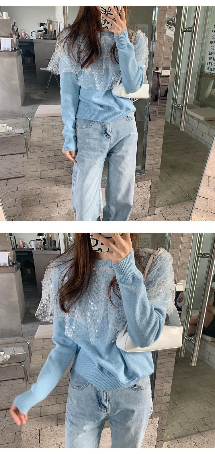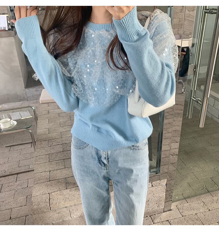 レースセーター オータムラウンドネックプルオーバー 秋物 Oネック ステッチ ビッグFスモールZ韓国22209973572