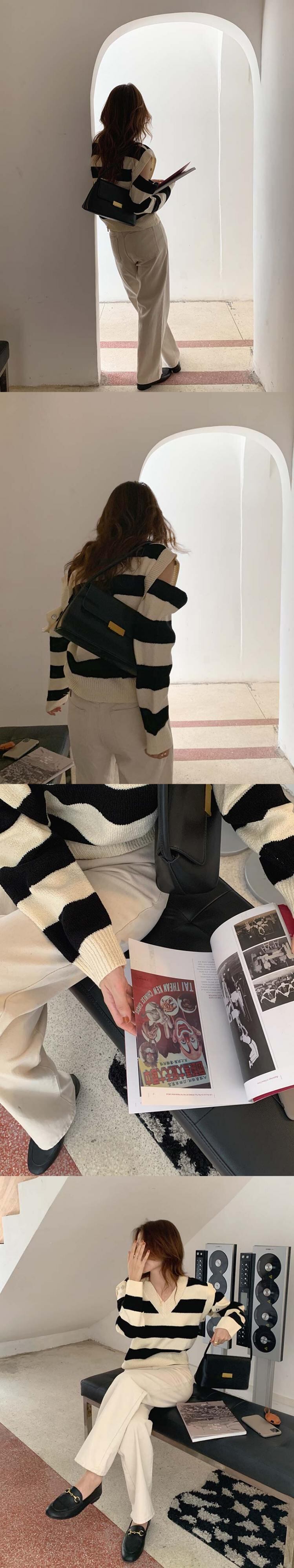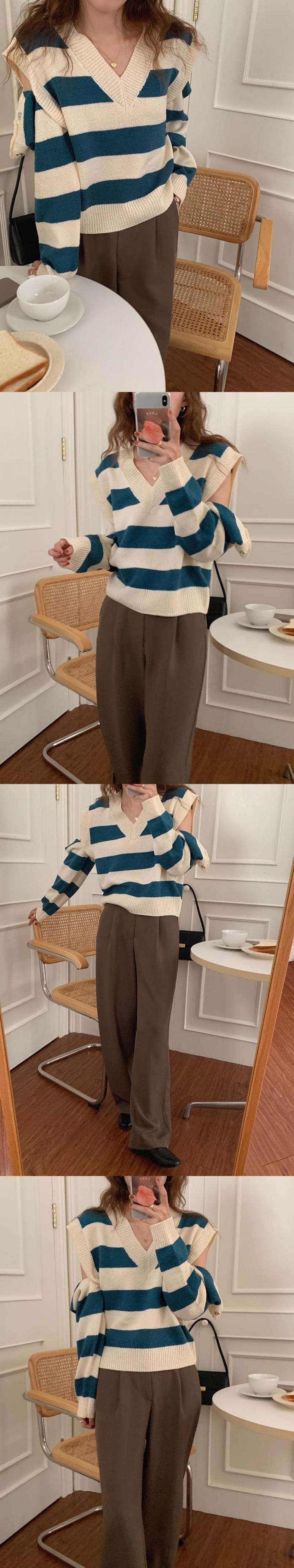 スリーブセーター ストライププルオーバー ニットトップス ビッグFスモールZ韓国53916881920