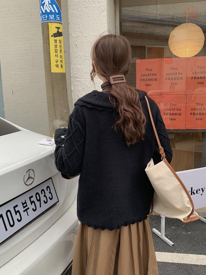 カラーニットセーター ジャケット オータムルーズウール レッド 刺繍 秋物 ステッチ ビッグFスモールZ韓国68427452979