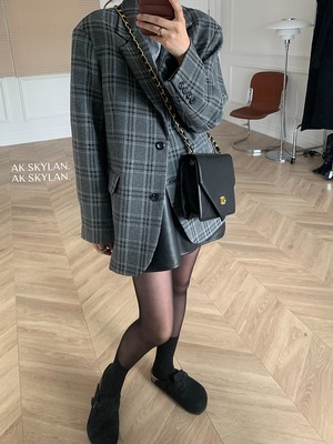 格子柄ウールオータムスタイルルーズカジュアル 秋物 ビッグFスモールZ韓国75654592906