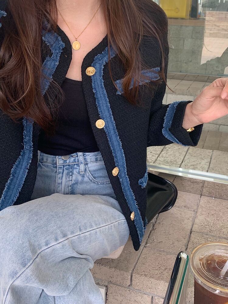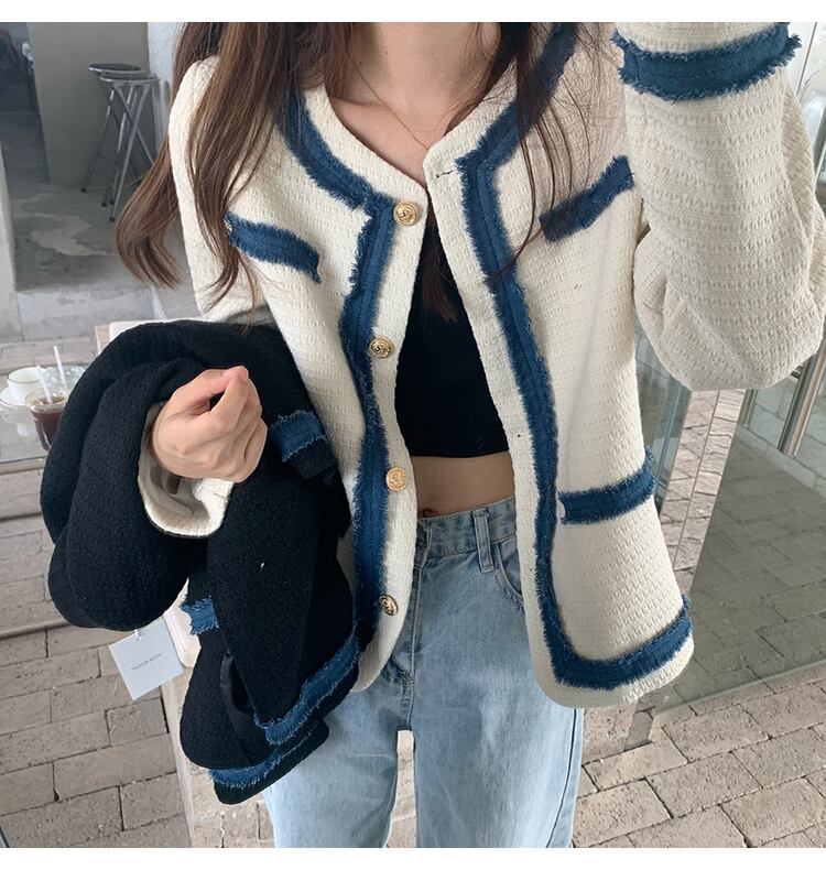 ジャケット オータムウィンターラウンドネックブラウス カーディガン長袖スリーブレディース ロング 秋物 冬物 Oネック ステッチ ビッグFスモールZ韓国29879706986